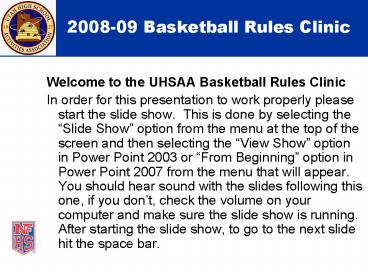 - Welcome to the UHSAA Basketball Rules Clinic