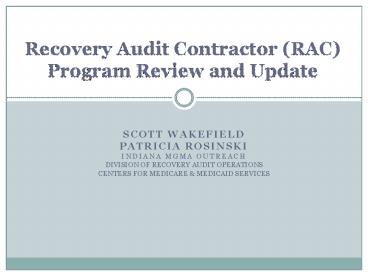 1Recovery Audit Contractor (RAC)Program Review