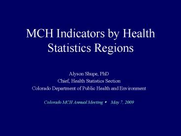 Environment - Colorado MCH Annual Meeting w May 7, 2009
