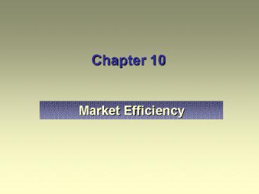 inefficiencies, at least in an economic sense - Economically efficient markets