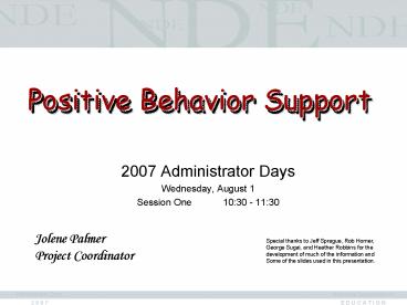 <Notice: Removed> Positive Behavior Support PowerPoint PPT Presentation