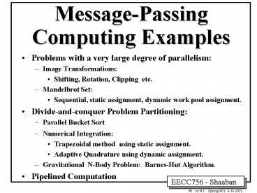 <Notice: Removed> Message-Passing Computing Examples PowerPoint PPT Presentation