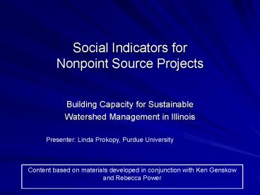 1Social Indicators forNonpoint Source Projects