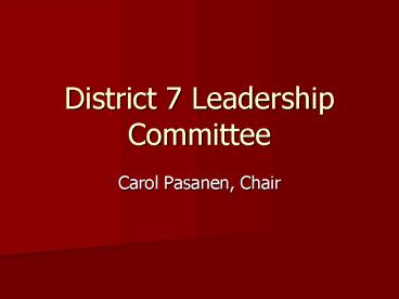 District 7 Leadership Committee PowerPoint PPT Presentation