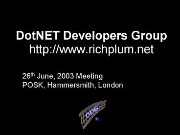 DotNET Developers Group http://www.richplum.net PowerPoint PPT Presentation