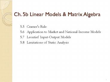 for a solution to exist? - Find Y, C, G by (a) matrix inversion (b) Cramers