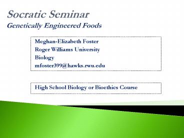 Socratic Seminar Genetically Engineered Foods PowerPoint PPT Presentation