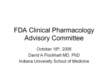 FDA Clinical Pharmacology Advisory Committee PowerPoint PPT Presentation