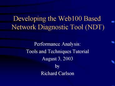 Developing the Web100 Based Network Diagnostic Tool (NDT) PowerPoint PPT Presentation