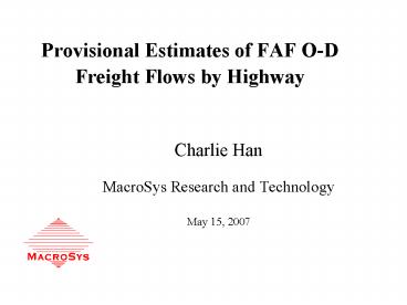 Title: Provisional Estimates of FAF OD Freight Flows by Highway