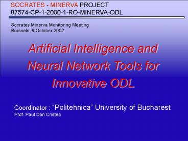Title: Artificial Intelligence and Neural Network Tools for Innovative ODL