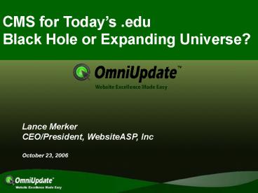 CMS for Todays .eduBlack Hole or Expanding