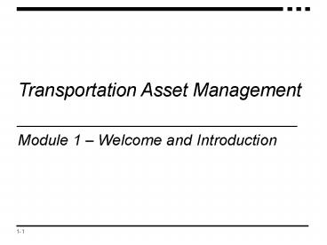 Title: Transportation Asset Management