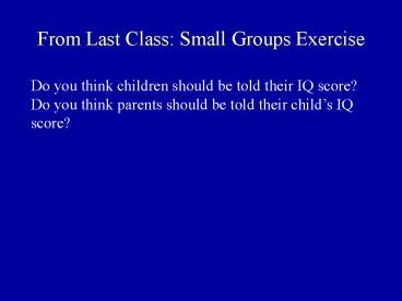 Title: From Last Class: Small Groups Exercise