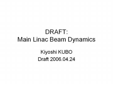 1DRAFTMain Linac Beam Dynamics