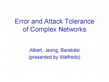 Error and Attack Tolerance of Complex Networks PowerPoint PPT Presentation