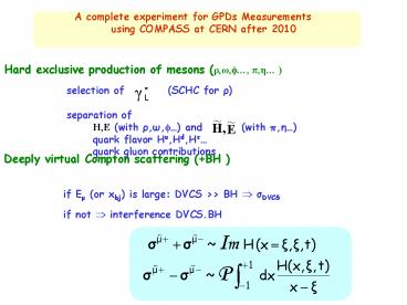 Title: A complete experiment for GPDs Measurements