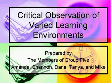 Title: Critical Observation of Varied Learning Environments