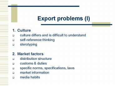 <Notice: Removed> Export problems (I) PowerPoint PPT Presentation