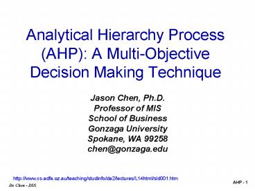 Title: Analytical Hierarchy Process (AHP): A Multi-Objective Decision Making Technique