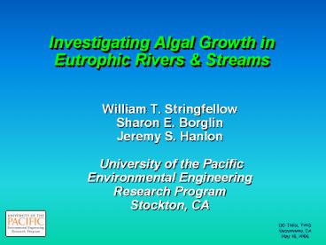 Title: Investigating Algal Growth in Eutrophic Rivers