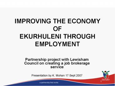 IMPROVING THE ECONOMY OF EKURHULENI THROUGH EMPLOYMENT PowerPoint PPT Presentation