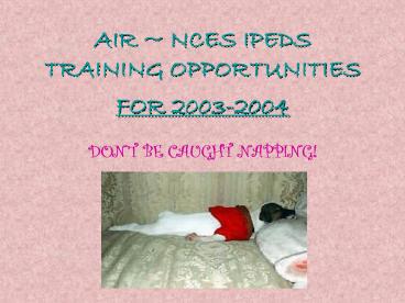 Title: AIR NCES IPEDS TRAINING OPPORTUNITIES FOR 20032004