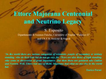 <Notice: Removed> Ettore Majorana Centennial and Neutrino Legacy PowerPoint PPT Presentation