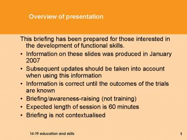 1Overview of presentation