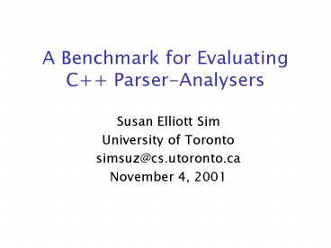 A Benchmark for Evaluating C ParserAnalysers PowerPoint PPT Presentation