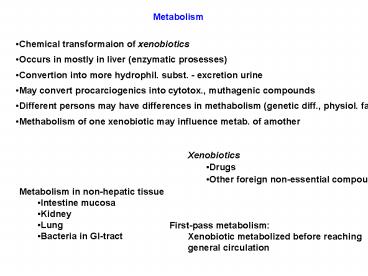 methabolism (genetic diff., physiol. factors) - Methabolism of one xenobiotic may influence