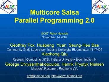 <Notice: Removed> Multicore Salsa Parallel Programming 2.0 PowerPoint PPT Presentation