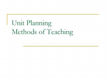Unit Planning Methods of Teaching PowerPoint PPT Presentation
