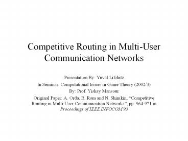 <Notice: Removed> Competitive Routing in Multi-User Communication Networks PowerPoint PPT Presentation