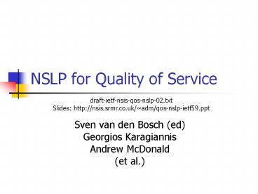 NSLP for Quality of Service PowerPoint PPT Presentation