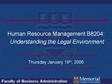 Title: Human Resource Management B8204: Understanding the Legal Environment