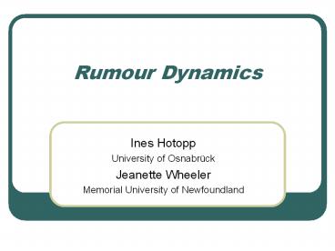 <Notice: Removed> Rumour Dynamics PowerPoint PPT Presentation
