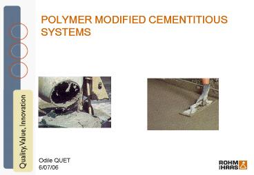 1POLYMER MODIFIED CEMENTITIOUS SYSTEMS