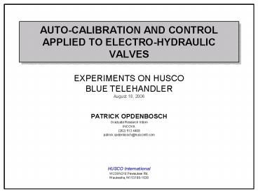Title: AUTO-CALIBRATION AND CONTROL APPLIED TO ELECTRO-HYDRAULIC VALVES