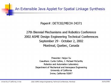 An Extensible Java Applet for Spatial Linkage Synthesis PowerPoint PPT Presentation