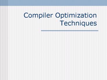 Compiler Optimization Techniques PowerPoint PPT Presentation