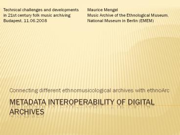 <Notice: Removed> Metadata interoperability of digital archives PowerPoint PPT Presentation
