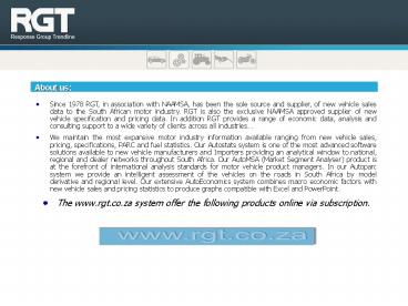 - Since 1978 RGT, in association with NAAMSA, has