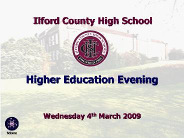 2ILFORD COUNTY HIGH SCHOOLHIGHER EDUCATION EVENING