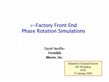 ?-Factory Front End Phase Rotation Simulations - PowerPoint PPT Presentation