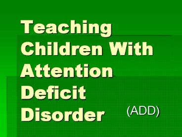 Teaching Children With Attention Deficit Disorder PowerPoint PPT Presentation