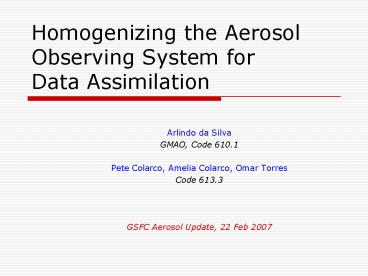 <Notice: Removed> Homogenizing the Aerosol Observing System for Data Assimilation PowerPoint PPT Presentation