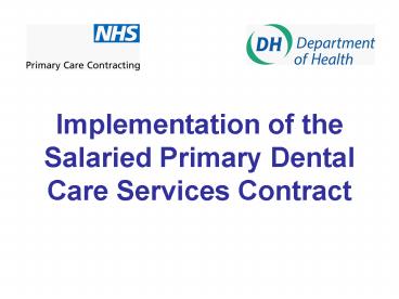 <Notice: Removed> Implementation of the Salaried Primary Dental Care Services Contract PowerPoint PPT Presentation