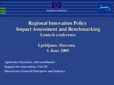 innovation in Europe - Joint DG ENTR DG REGIO initiative