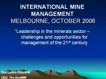 Title: INTERNATIONAL MINE MANAGEMENT MELBOURNE, OCTOBER 2006